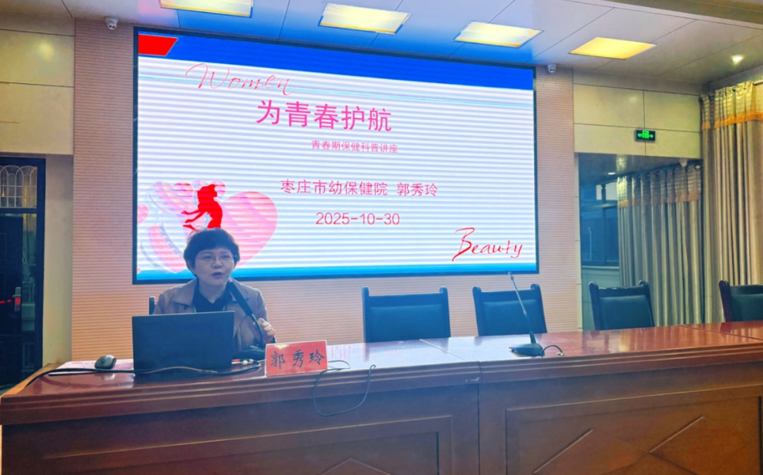 讲座特邀枣庄市妇幼保健院妇产科主任医师郭秀玲担任主讲。郭主任以“为青春护航”为主题,结合丰富的临床经验,从青春期少女的生理、心理特点出发,运用生动案例和亲切语言,系统讲解了青春期的发育特点、保健知识及常见健康问题。她详细阐述了从第二性征发育到生殖系统成熟的过程,并针对月经不调、经期偏头痛等常见问题,提供了科学的护理建议和应对方法。