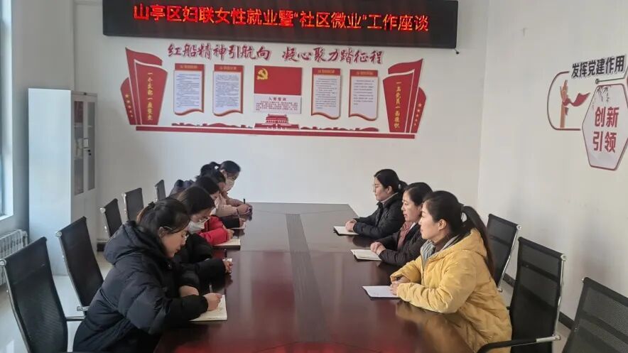 为深入贯彻落实全区“榴枣归乡”工作部署精神,全面实现“聚人口、增人力、引人才、提人气”任务目标,充分挖掘社区女性群体就业潜力,推动全区女性创业就业工作。12月27日,山亭区妇联深入部分社区就女性“家门口”就业暨“社区微业”工作开展座谈。区妇联党组书记、主席刘传梅,党组成员、副主席谢立新,山城街道妇联及部分社区相关负责同志、社区工作者和妇女代表等参加活动。