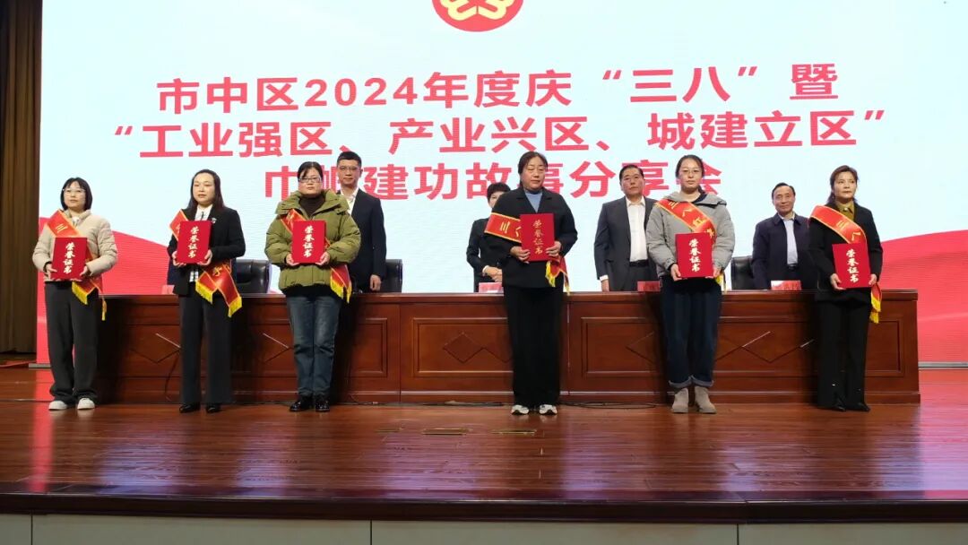 会上宣读了《关于表扬2023年度市中区三八红旗手、三八红旗集体的通报》并进行了颁奖。