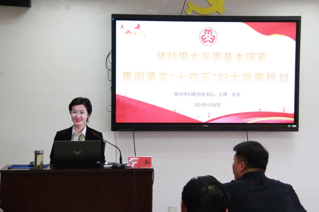 为深入贯彻落实习近平总书记关于男女平等基本国策的重要论述和第七次全省妇女儿童工作会议精神,进一步增强我市领导干部的社会性别平等意识,提高广大领导干部贯彻落实男女平等基本国策的领导力和执行力,近日,市妇儿工委副主任、市妇联党组书记、主席张弘应邀到市委党校为2024年科级干部进修班学员作题为《坚持男女平等基本国策 贯彻落实“十四五”妇女发展规划》的专题讲座。