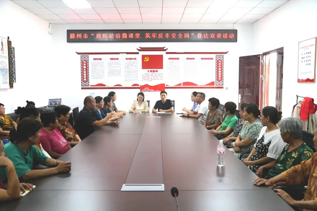 7月22日,滕州市“庭院法治微课堂 筑牢反诈安全网”普法宣讲活动在张汪镇皇殿岗村举行。滕州市妇联党组成员、副主席、市妇女儿童事务服务中心主任王蕾,市公安局刑警大队情报中队指导员赵珊,张汪镇党委副书记、政协委员联络室主任房永,妇联以及40余名妇女同志参加活动。