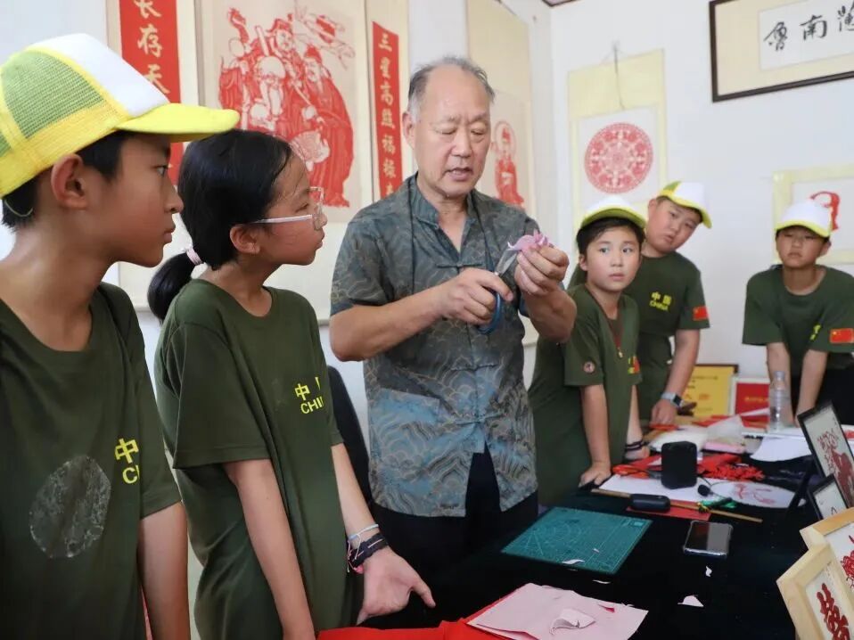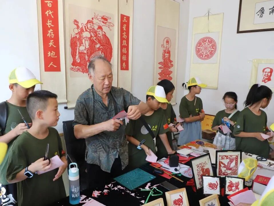 随后,大家来到鲁南兰褀剪纸文化馆,非遗传承人王广明老师向学生们讲解剪纸基本技法,并手把手地教孩子们学习剪制石榴、蝴蝶技艺。孩子们兴趣盎然,一番细细裁剪之后,各种活灵活现的图案跃然纸上。