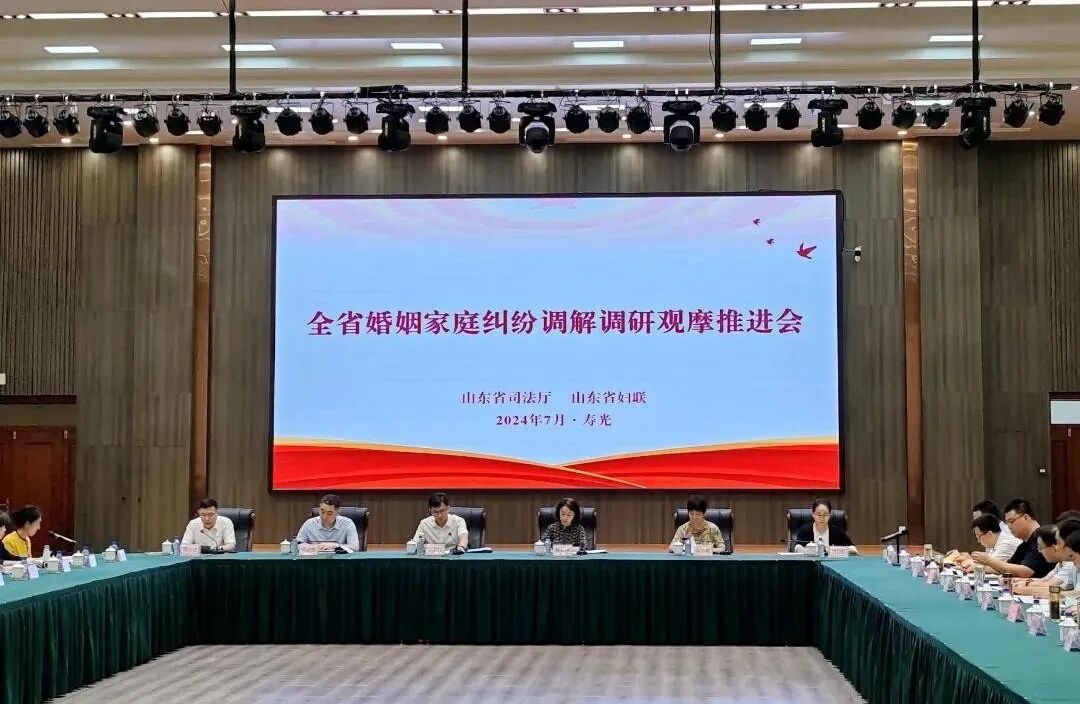 为认真学习贯彻落实党的二十届三中全会和习近平总书记视察山东重要讲话精神,坚持和发展新时代“枫桥经验”,总结“阳光家事”婚姻家庭纠纷调解活动开展情况,7月24日至25日,省司法厅、省妇联在寿光市联合举办全省婚姻家庭纠纷调解调研观摩活动。省司法厅、省妇联有关处、部负责同志,济南、淄博、枣庄、潍坊、济宁、泰安、临沂、日照市司法局、妇联分管领导及有关科、部负责同志,部分区县司法局、妇联及婚姻家庭纠纷调解组织负责人共50余人参加活动。