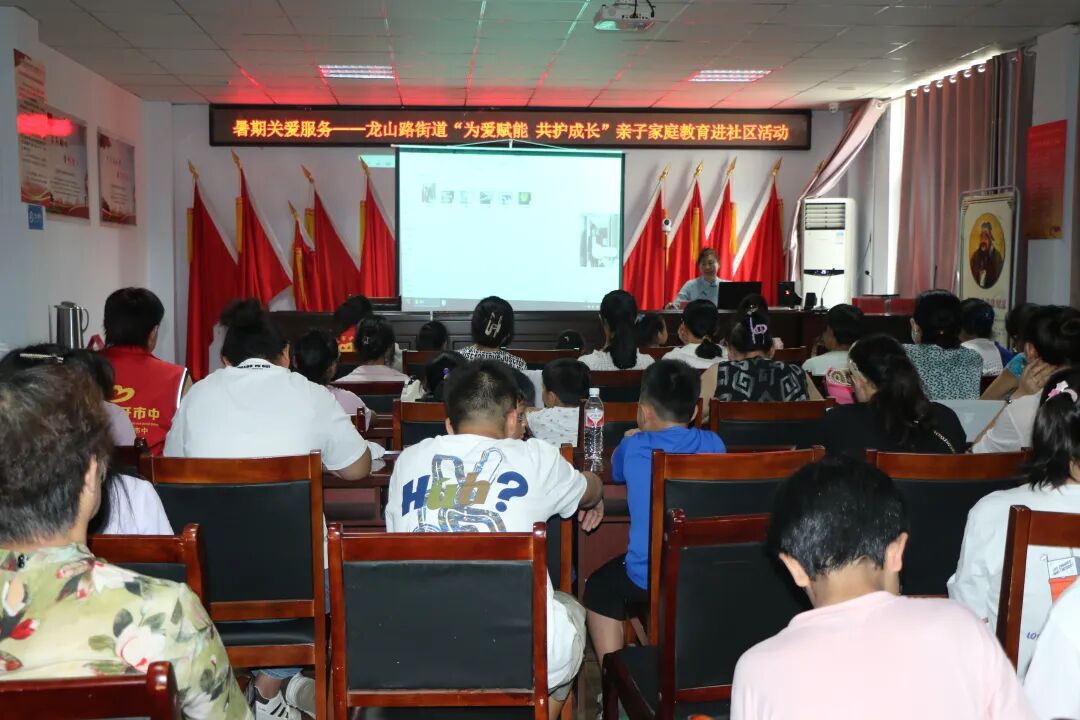 为优化家庭教育,为广大家庭赋能,促进家庭更加和谐幸福,共护少年儿童身心健康成长,8月9日,龙山路街道妇联、关工委、道南社区联合开展“为爱赋能 共护成长”亲子家庭教育进社区活动。辖区家庭代表共计50余人参加。