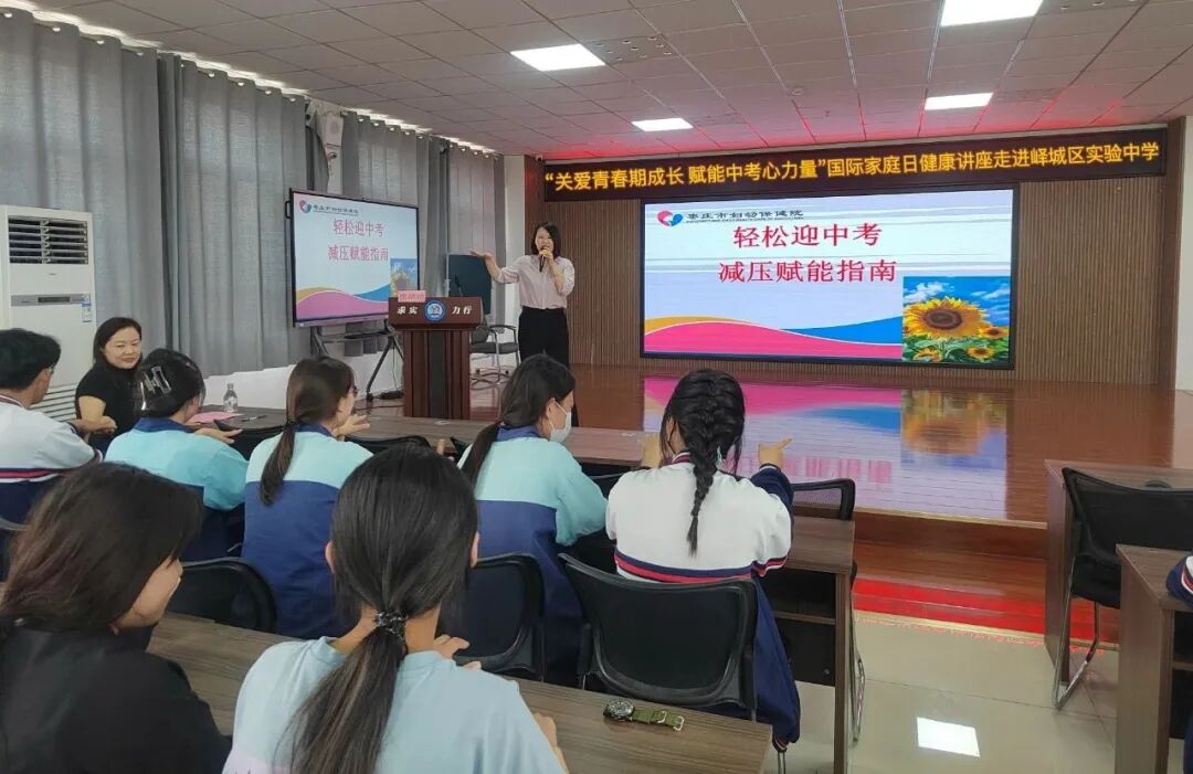 为充分发挥第四个全国家庭教育宣传周的平台作用,深化家庭教育指导服务,聚焦青少年身心健康,提升学生自我认知与健康管理能力,助力初三学子以阳光心态迎接中考,5月14日,枣庄市妇联、市妇女儿童活动中心、峄城区妇联,联合市妇幼保健院走进峄城区实验中学(峄州部)开展"关爱青春期成长,赋能中考心力量"健康讲座。活动以生动多元的形式为师生带来一场身心滋养盛宴,现场气氛热烈、互动频频。