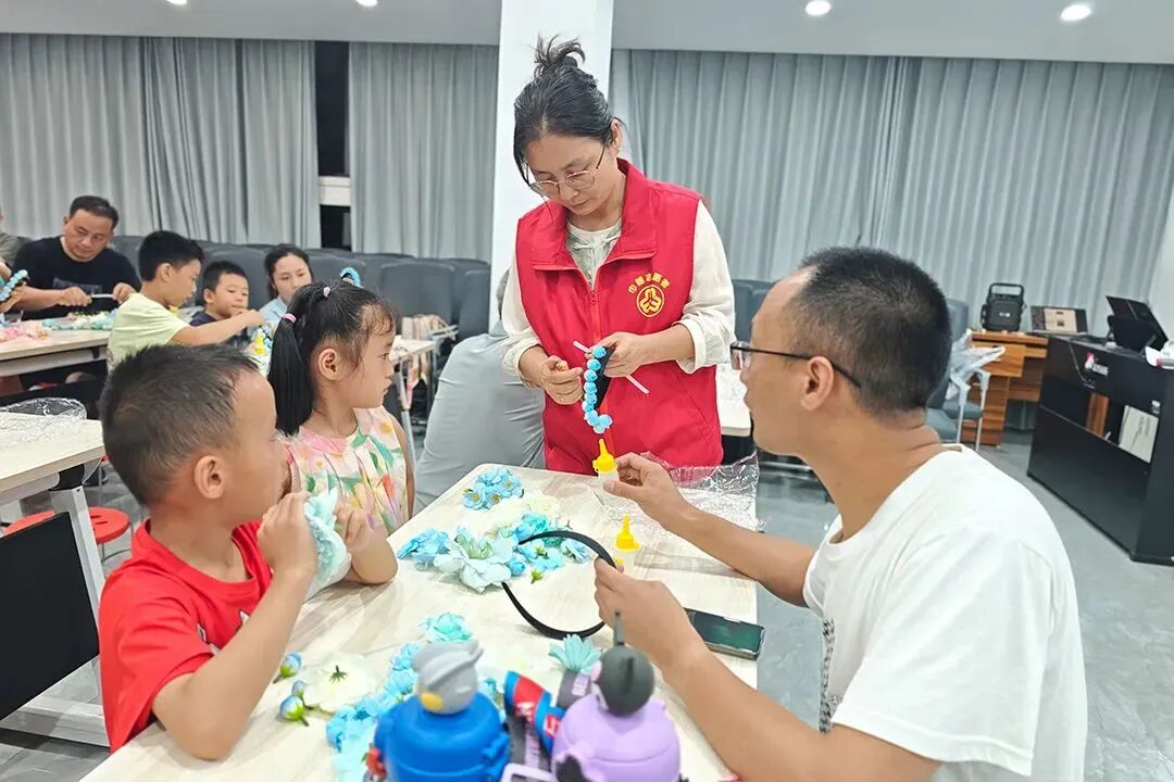 为推动优质文化资源直达基层,丰富优质文化服务和文化产品供给,7月11日晚,由滕州市妇联、龙泉街道新时代文明实践所精心组织的“小手拉大手”簪花非遗文化传承活动在龙泉街道樱花苑社区新时代文明实践站温情上演。此次活动,不仅为辖区青少年的课余生活增添了一抹浓郁的传统文化色彩,更搭建起一座促进亲子情感交流的温馨桥梁。 活动伊始,社区家长学校老师通过互动问答点燃现场气氛,随后娓娓道来簪花文化:从泉州蟳埔女独具特色的“簪花围”,到其绵延三千年的历史脉络,再到不同花卉承载的美好寓意,让家长与孩子们在聆听中感受非遗的深厚底蕴。 进入制作环节,老师细致讲解并示范了用框架、塑料花、胶水制作簪花的步骤,鼓励大家自由发挥创意。亲子家庭迅速投入创作,有的分工协作、默契配合,有的共同构思、巧妙搭配,一件件融入巧思的簪花作品渐次成型,现场满是欢声笑语。 活动最后,大家戴上亲手制作的簪花合影留念,定格温馨瞬间。非遗传承不仅是技艺的传递,更是情感的联结,在家长们的陪伴下,传统文化的种子在孩子们的心中生根发芽。 此次活动既让亲子家庭近距离触摸到非遗文化的独特魅力,在亲手制作簪花的过程中感受传统技艺的精巧与深厚底蕴,也为家长和孩子创造了一段专注陪伴的温馨时光,拉近了彼此的距离,让亲子情感在共同体验中得到升华。这种以文化为纽带的互动,不仅让非遗传承变得生动可感,更让家庭教育在轻松愉悦的氛围中悄然浸润,收获了文化传承与情感滋养的双重意义,进一步丰富了文化社区建设的内涵,让社区家文化熠熠生辉。