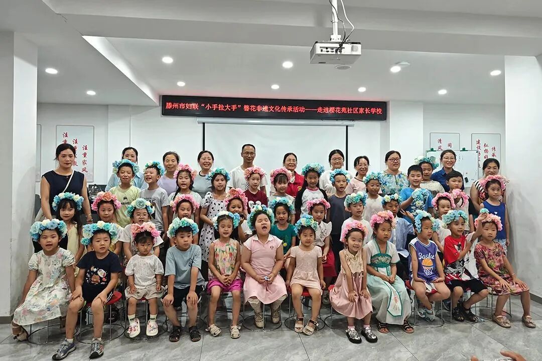 滕州市“小手拉大手”簪花非遗文化传承活动走进龙泉街道樱花苑社区家长学校