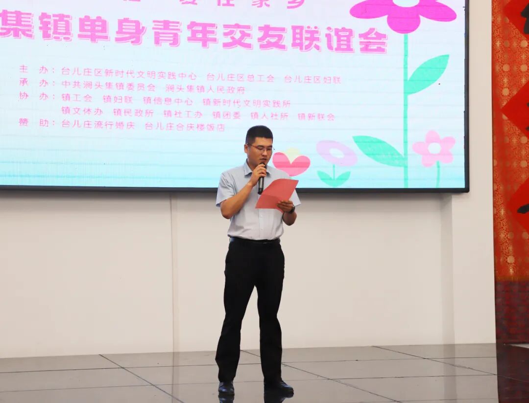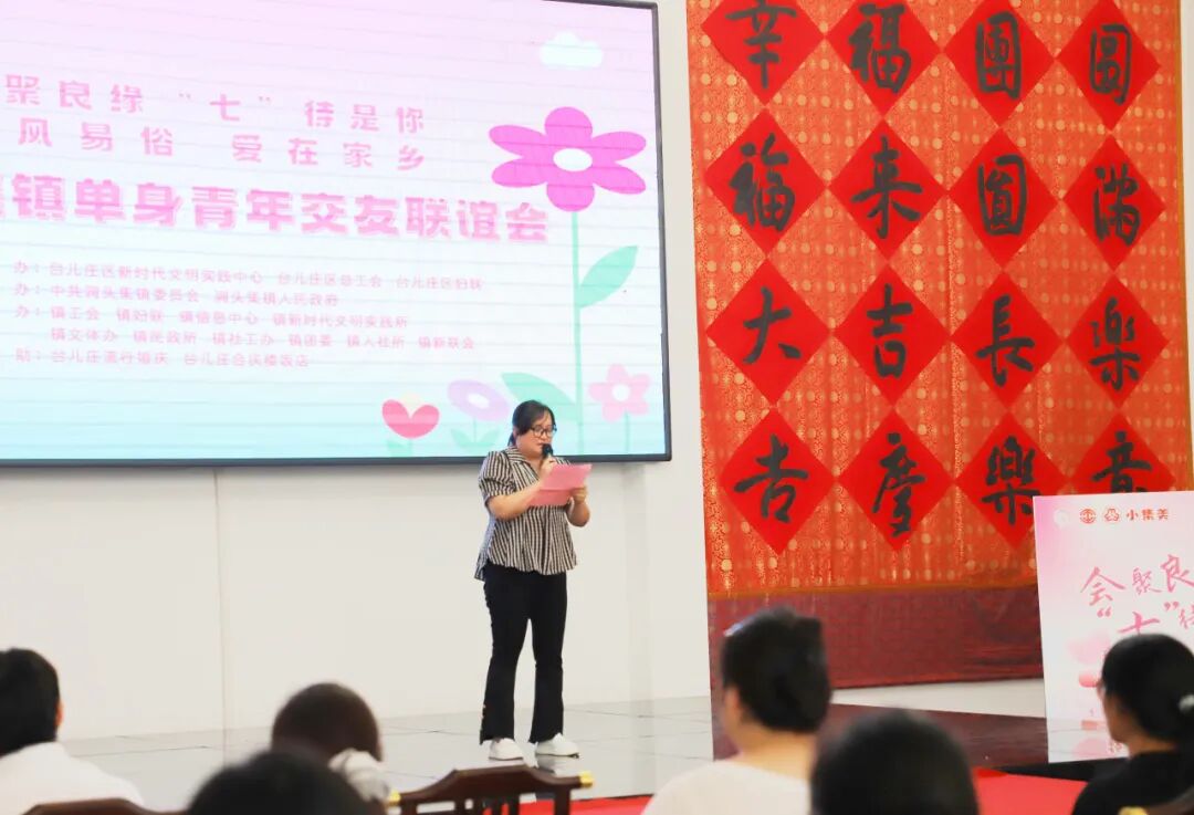 活动以“会聚良缘 “七”待是你 移风易俗 爱在家乡”为主题,在涧头集镇农村电商孵化与乡村服务中心(镇新风礼堂)举行。开幕仪式上,台儿庄区新时代文明实践服务中心主任程波致辞,涧头集镇党建工作办公室副主任吴凯华宣读了《移风易俗倡议书》,倡导青年朋友们树立文明婚恋观,共同推动移风易俗工作。
