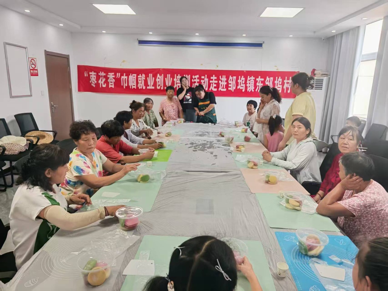 8月28日,在邹坞镇东邹坞村开展花样面点技能培训,30余名有就业意愿的妇女参加培训,市派第一书记参加活动。