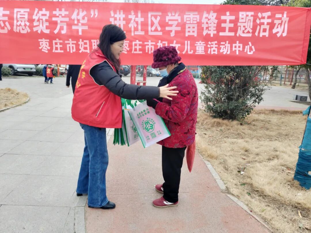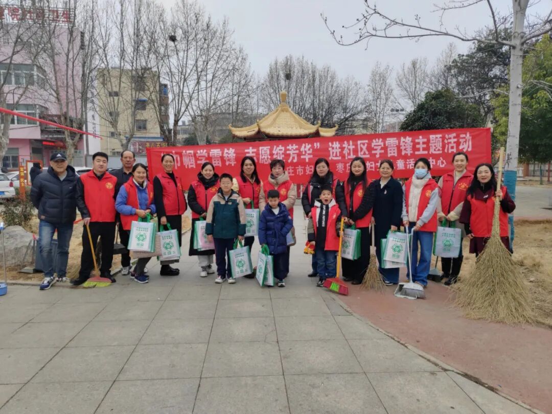 活动现场设立服务宣传点,巾帼志愿者们围绕普法维权、家庭教育等内容开展志愿服务。她们向过往群众发放倡议书和宣传手册,结合《妇女权益保障法》《反家庭暴力法》等法律法规,耐心讲解法律知识,帮助妇女增强维权意识,学会运用法律武器保护自身合法权益。同时,志愿者们还向家长发放《家庭教育促进法》等宣传资料,引导家长树立科学的家庭教育观念,营造良好的家庭成长环境。面对群众的咨询,志愿者们耐心解答、细致讲解,将贴心的服务送到居民家门口。 在“清洁家园”行动中,志愿者们深入社区绿化带和公共活动区域,开展环境美化。大家分工明确,干劲十足:清扫路面落叶、清理卫生死角、擦亮宣传栏和健身器材。不怕脏、不怕累,用汗水引导居民增强环保意识,共同建设整洁优美的家园。忙碌的“巾帼红”穿梭在楼宇间,成为春日社区里一道动人的风景。 此次学雷锋日主题志愿服务活动,市妇女儿童活动中心充分发挥组织优势,将志愿服务与政策宣传等有机结合,不仅丰富了群众的精神文化生活,更营造了“人人学雷锋、天天有雷锋、时时做雷锋”的浓厚氛围。下一步,市妇女儿童活动中心将继续深化巾帼志愿服务行动,不断拓展服务领域,创新服务形式,引导更多妇女和家庭参与到志愿服务中来,让雷锋精神在新时代绽放更加璀璨的光芒,为枣庄高质量发展凝聚巾帼之力、彰显巾帼担当。