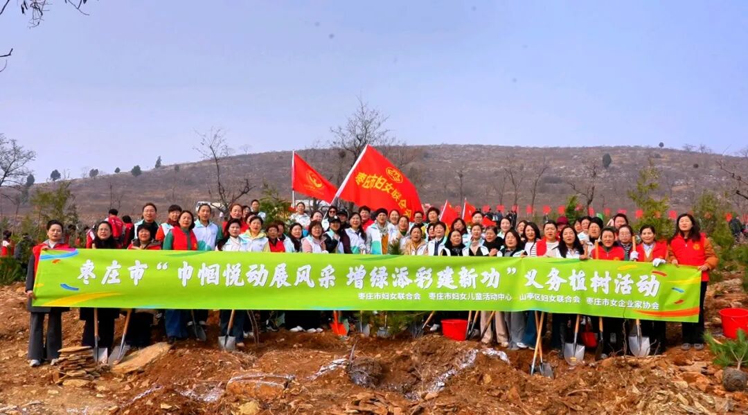 枣庄市“巾帼悦动展风采 增绿添彩建新功”义务植树活动举行