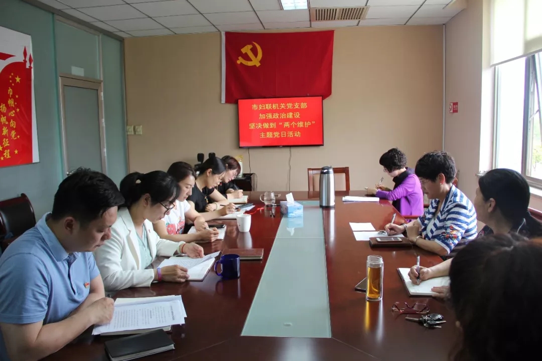 5月28日,市妇联机关党支部在党员活动室开展“加强政治建设坚决做到两个维护”主题党日活动。