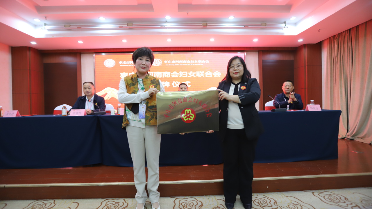 薛城区妇联分管负责同志为新成立的枣庄市河南商会妇女联合会授牌,希望新成立的商会妇联牢记使命、履职尽责,团结带领广大在枣豫籍妇女,大力弘扬企业家精神和自尊、自信、自立、自强的精神,抓住机遇,勇立潮头,不断提升企业竞争力影响力,同时积极履行社会责任,参与公益事业,在实现个人梦想与企业发展的同时,为深化鲁豫两地的交流合作,为枣庄“强工兴产、转型突围”奋斗目标贡献更多的巾帼智慧和力量,共同书写枣庄市河南商会妇女事业发展的精彩华章。