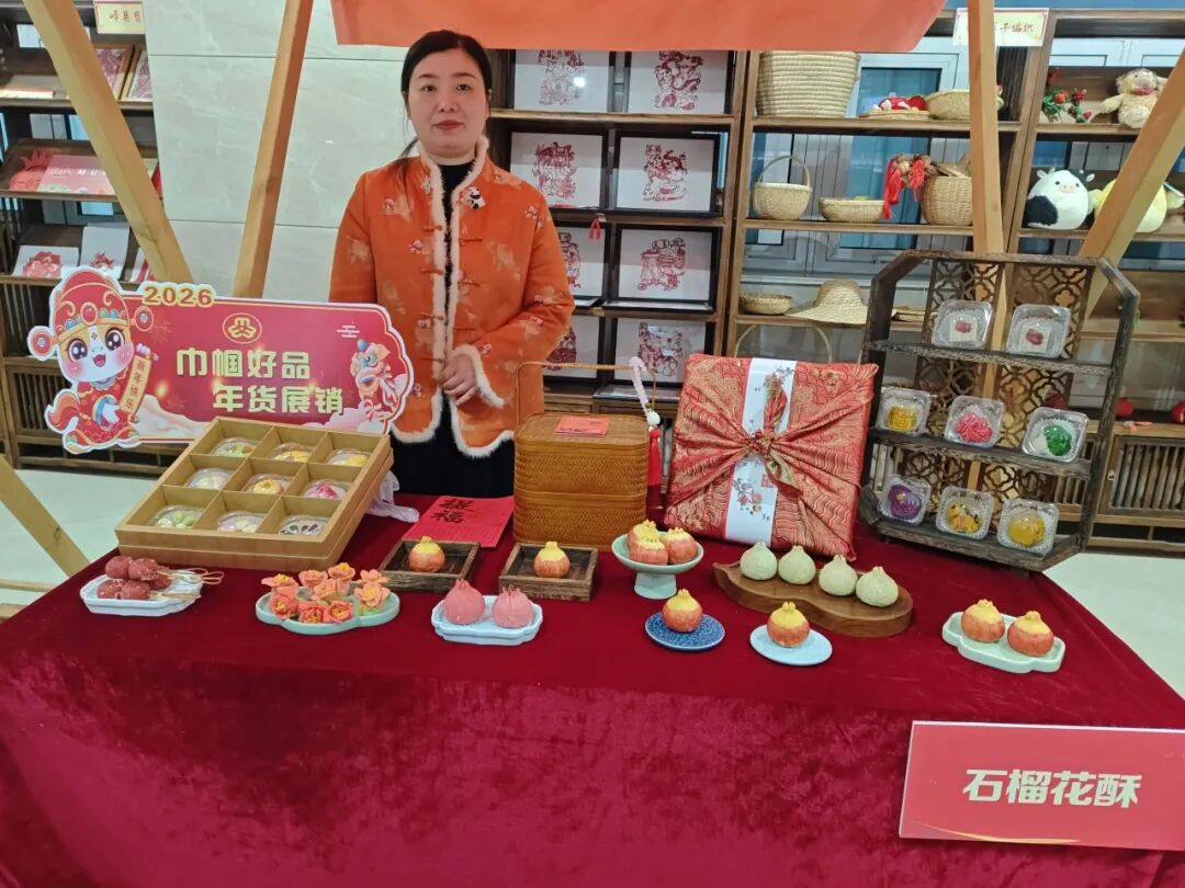 活动现场年味浓郁,氛围热烈。核心展区“巾帼好品年货展销区”前人头攒动、热闹非凡。展区内商品琳琅满目、品类丰富多元。美果来石榴汁、石榴煎饼、石榴面条、石榴花酥、阴平粉皮等一批极具峄城地域特色的“巾帼好品”集中亮相,既有高质优价休闲食品、绿色生态优质农副产品,满足市民日常饮食与年货储备需求;也有匠心独具的非遗技艺展示、精美别致的手工文创工艺品,彰显传统文化与现代创意的碰撞融合,为广大消费者提供了多元化、个性化的年货购物选择。
