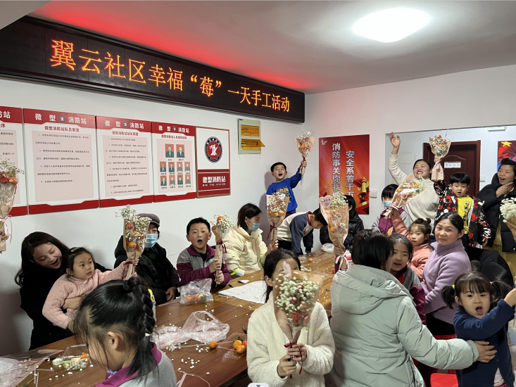 山亭区山城街道翼云社区亲子阅读基地开展幸福“莓”一天花束制作活动
