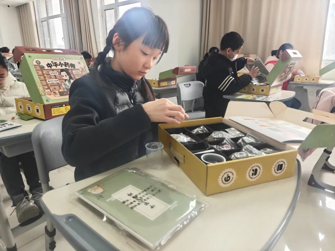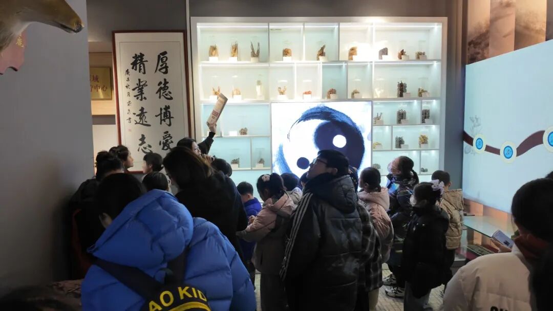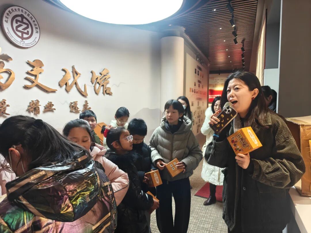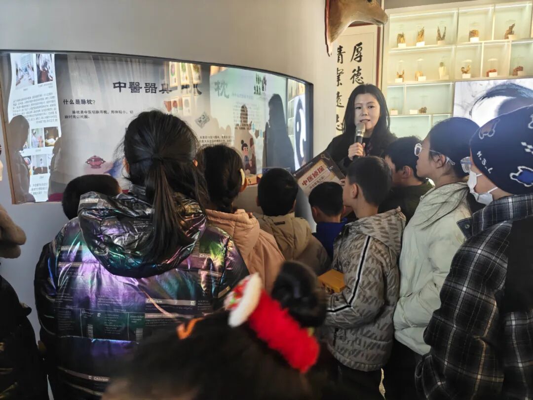 在中医药文化馆内,孩子们手持“中医小侦探”任务卡,沉浸式参与探秘寻宝互动,在趣味探索中解锁中医药小知识。馆内陈列的古代药具、器具模型与中医药历史文化展板,让孩子们直观感受中医药文化的深厚底蕴与独特魅力。顺利完成任务的“小侦探”们还收获了专属中医药盲盒,为这场生动有趣的中医研学之旅增添了满满惊喜与欢乐。