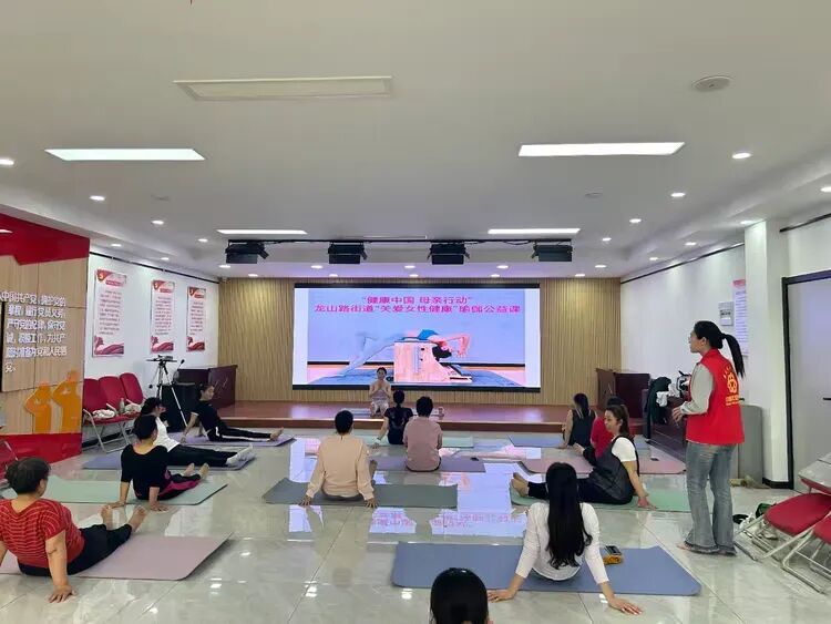 为深入贯彻落实党的二十大精神和习近平总书记关于健康中国建设的重要论述,持续深化“健康中国 母亲行动”,宣传健康理念,关爱女性健康,在“健康中国 母亲行动”宣传月活动期间,龙山路街道妇联在辛庄社区妇女儿童家园连续开展了四期关爱女性健康瑜伽公益课活动。通过引领广大女性进行健康的锻炼、宣传普及科学的健康常识,促进大家一起行动起来,以女性健康促进家庭健康助力健康中国!