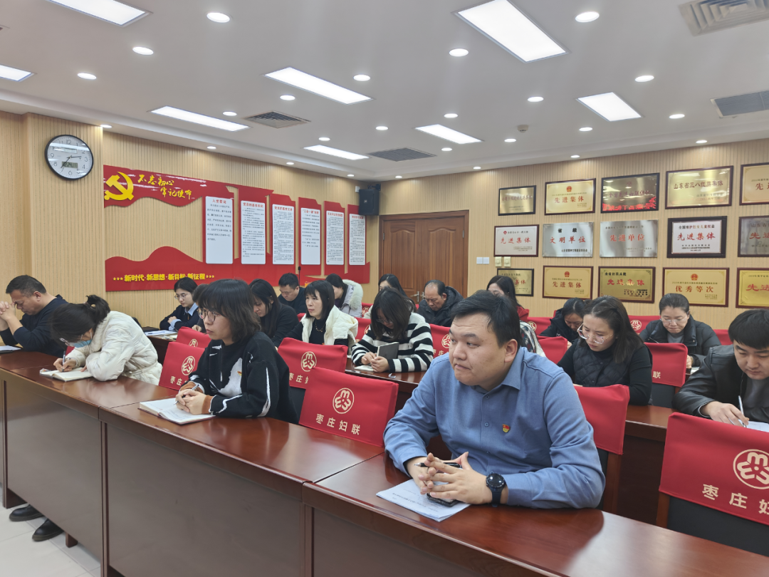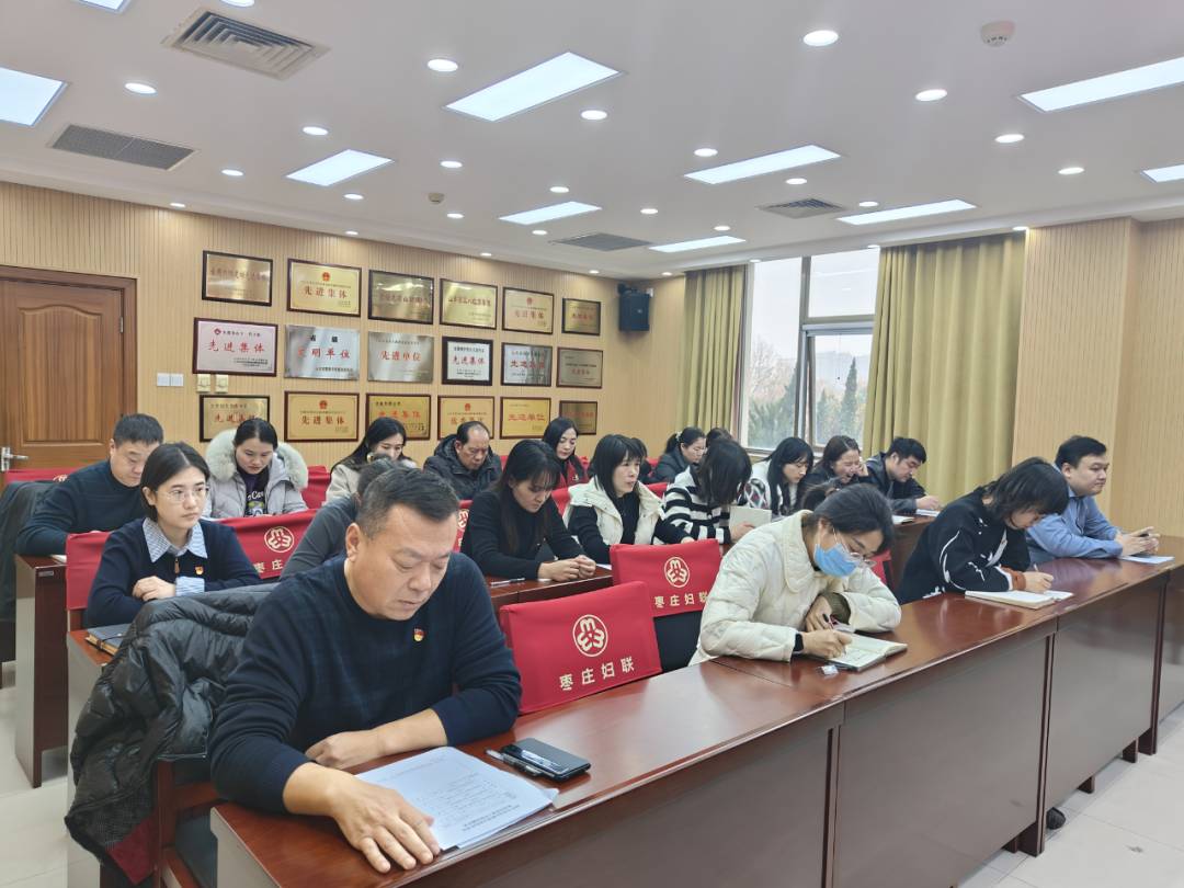 12月23日,枣庄市妇联召开2025年度基层党组织书记抓基层党建工作述职评议会议,听取各基层党支部书记2025年度抓基层党建工作情况汇报并开展集中评议。党组书记、主席鲁海燕出席会议并讲话,党组副书记、副主席、二级调研员田传真主持会议,党组成员、副主席闫婧,党组成员、市妇女儿童事业发展中心主任李莉,各支部党员参加会议。