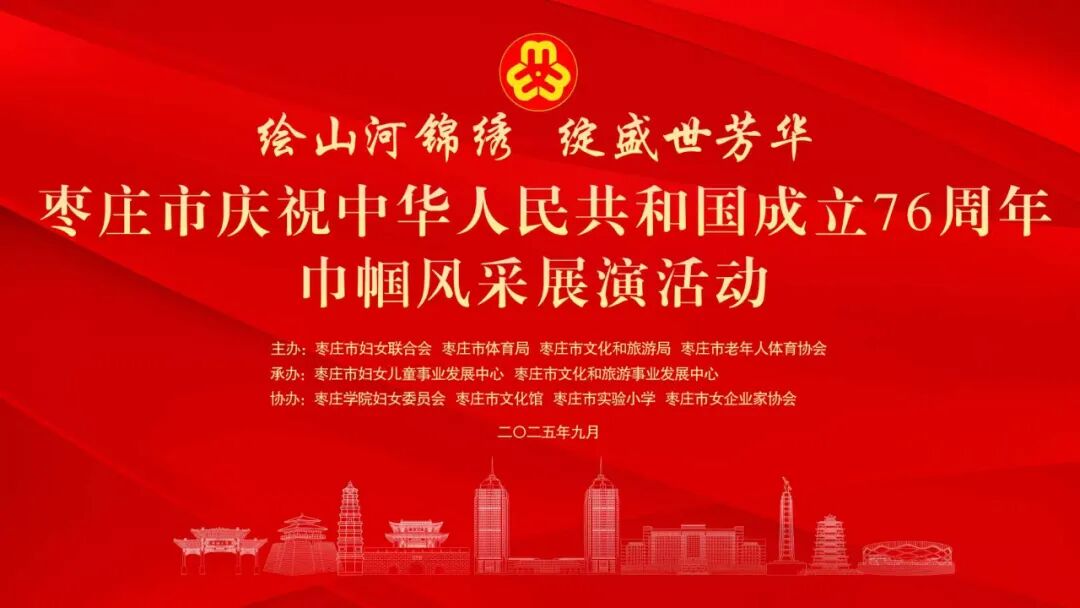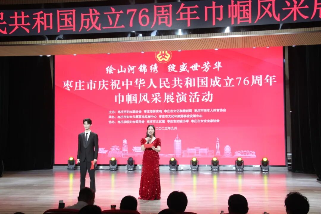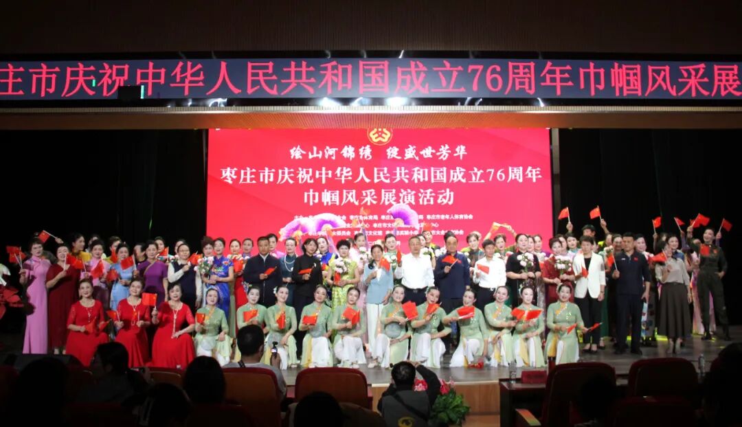 金秋送爽,盛世华章。为庆祝中华人民共和国成立76周年,营造喜迎国庆的浓厚氛围,展示枣庄女性热爱生活、团结奋进的精神风貌,9月29日下午,由枣庄市妇女联合会、枣庄市体育局、枣庄市文化和旅游局、枣庄市老年人体育协会联合主办,枣庄市妇女儿童事业发展中心、枣庄市文化和旅游事业发展中心承办,枣庄学院妇女委员会、枣庄市文化馆、枣庄市实验小学、枣庄市女企业家协会协办的“绘山河锦绣 绽盛世芳华”巾帼风采展演活动在市文化馆四楼演艺厅成功举办。
