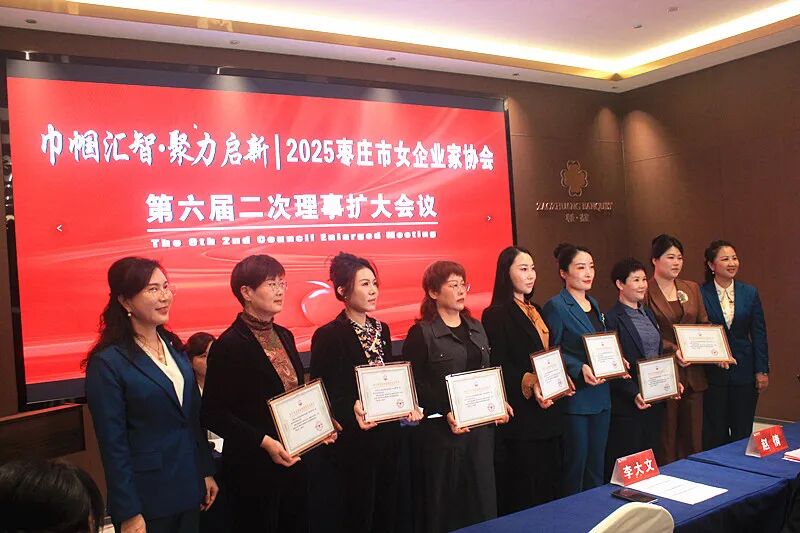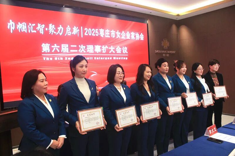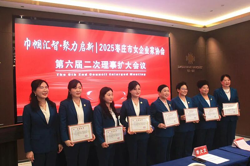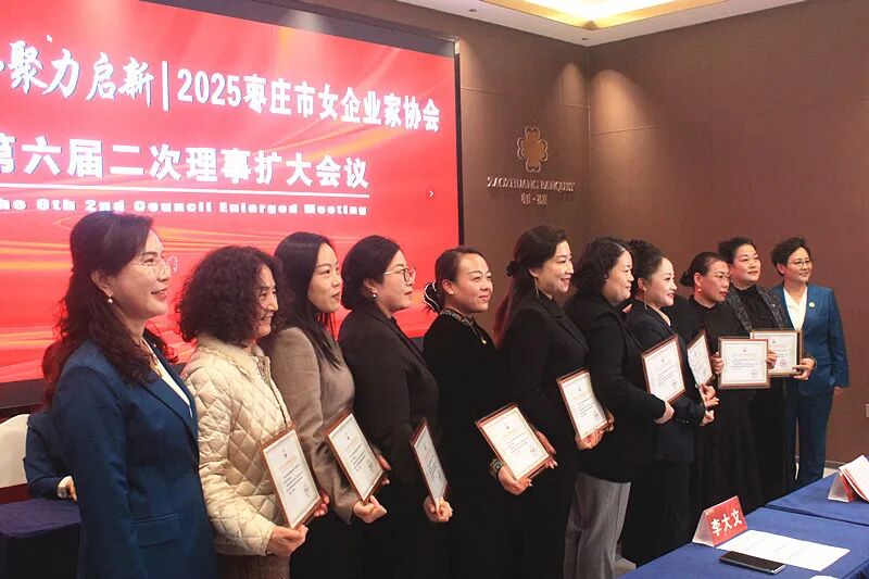 2025年12月14日,以“巾帼汇智•聚力启新”为主题的2025枣庄市女企业家协会六届二次理事扩大会议圆满举办。枣庄市妇联副主席、市女企业家协会会长王丽萍出席会议并讲话,协会全体理事及新增会员代表参会。代表们齐聚一堂,共商协会发展大计,共话巾帼创业新机遇。本次会议聚焦新会员纳新、金融服务赋能、会员关怀升温三大核心议题,以务实举措为女企业家发展搭建平台、凝聚力量,为推动枣庄“她经济”高质量发展凝聚巾帼共识、汇聚奋进力量。